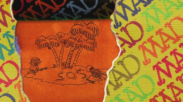 - Animated Marginals segment - A far away boat is sinking in the ocean, but Alfred E. Neuman had survived and swims to a nearby island, and sees the written letters "S.O.S." and a skeleton.