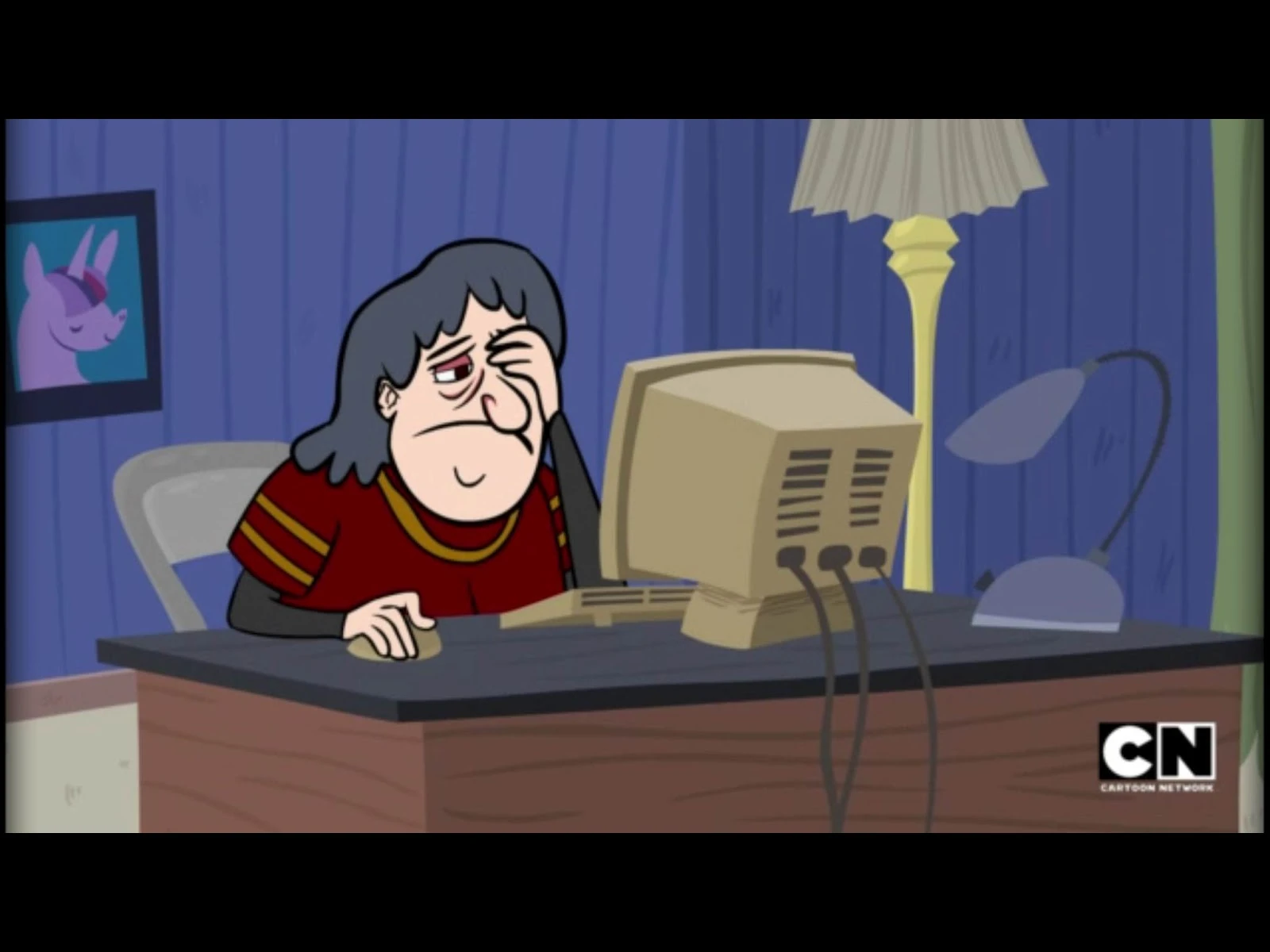 - In the scene of CelebMD with the old lady, there seems to be a picture of Twilight Sparkle on her wall.